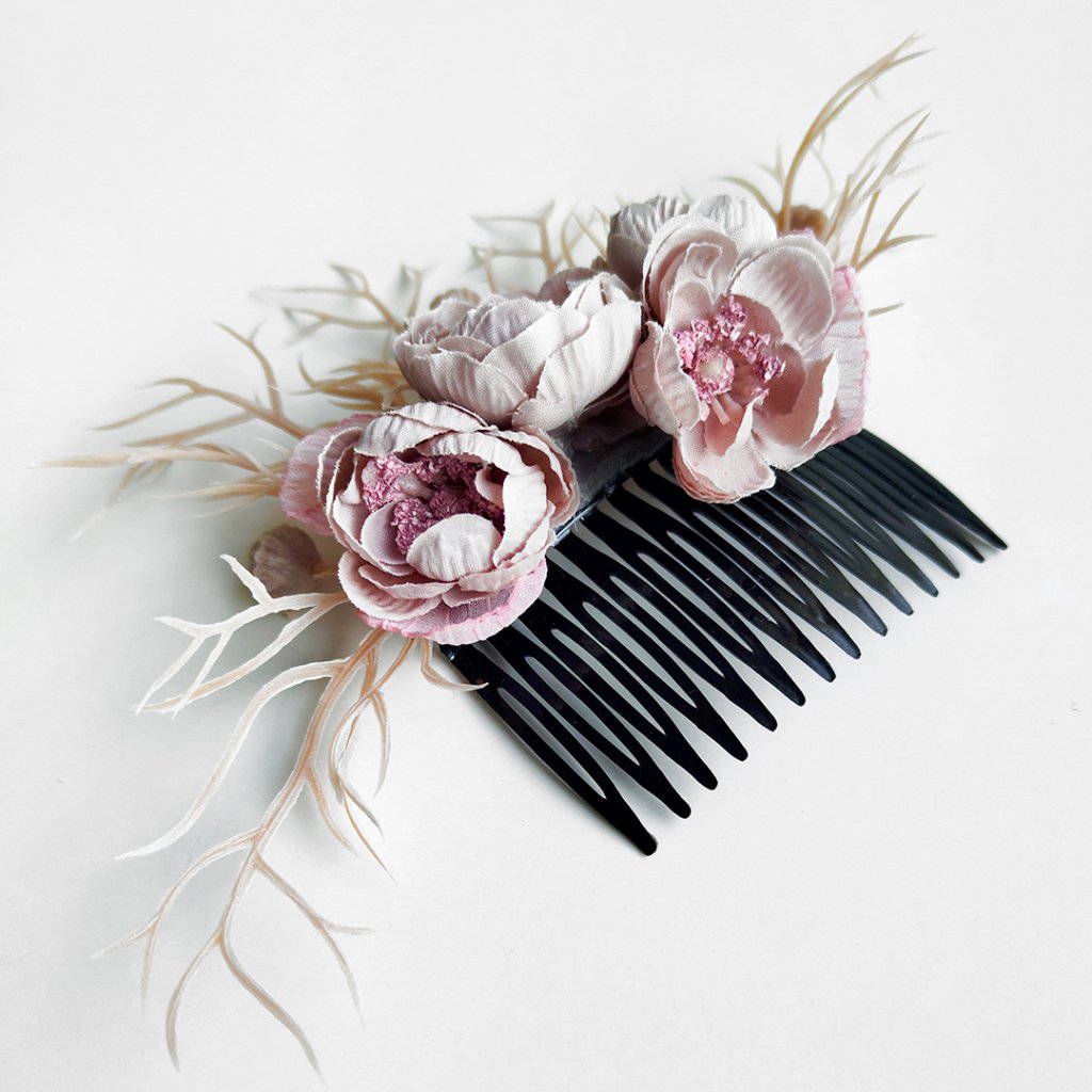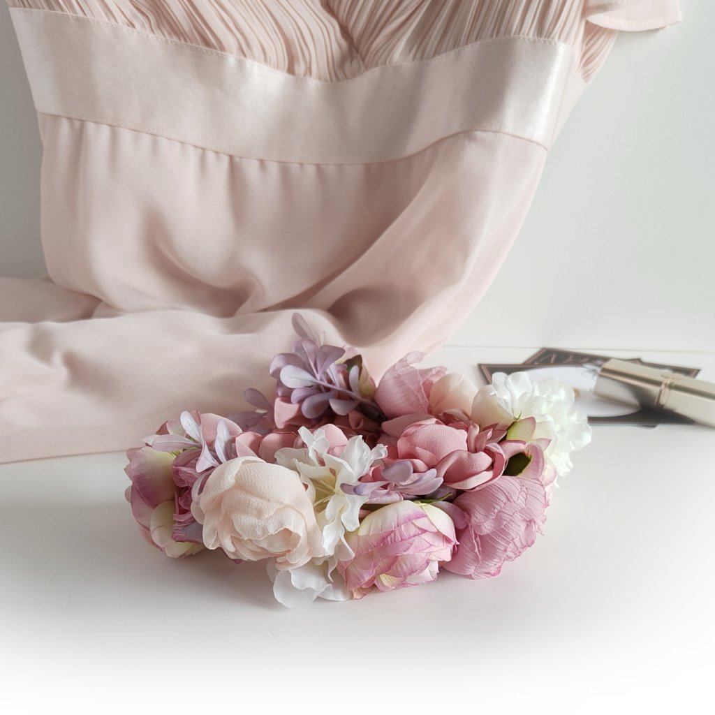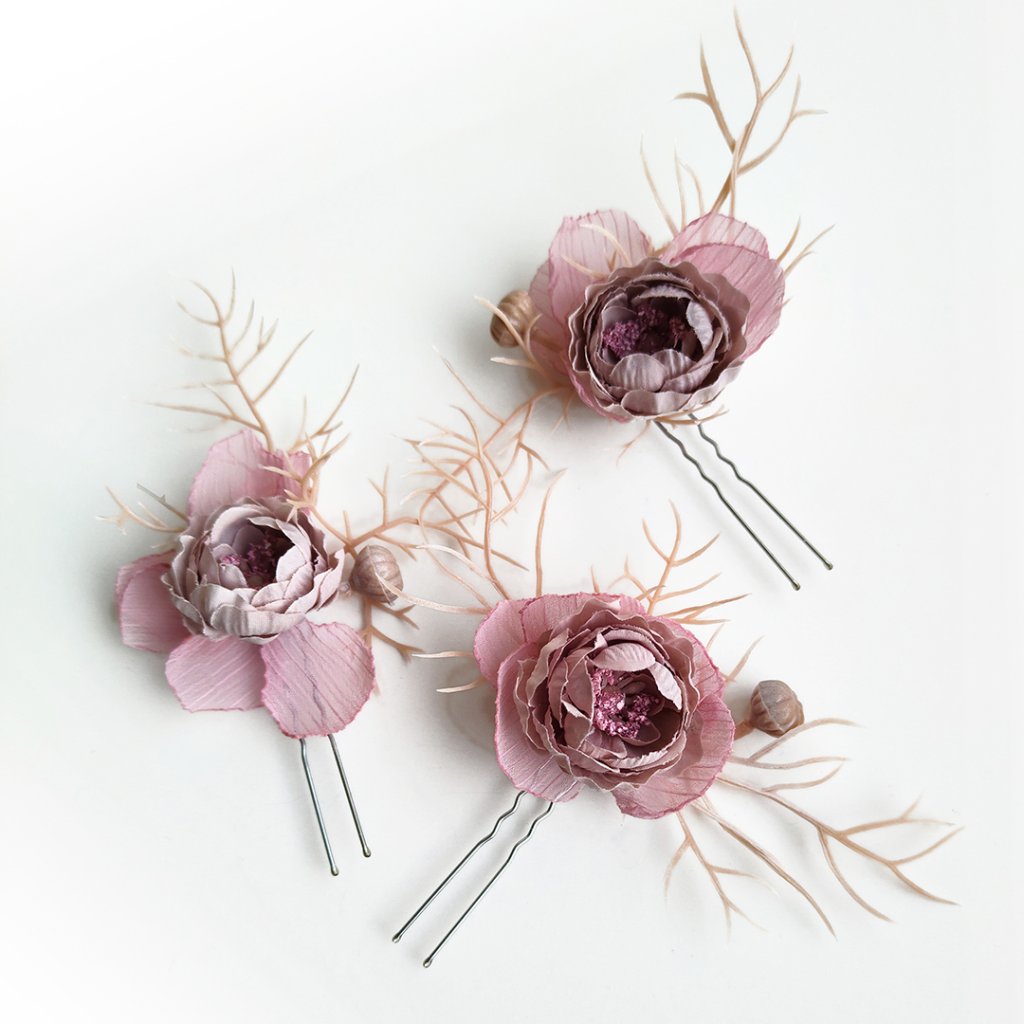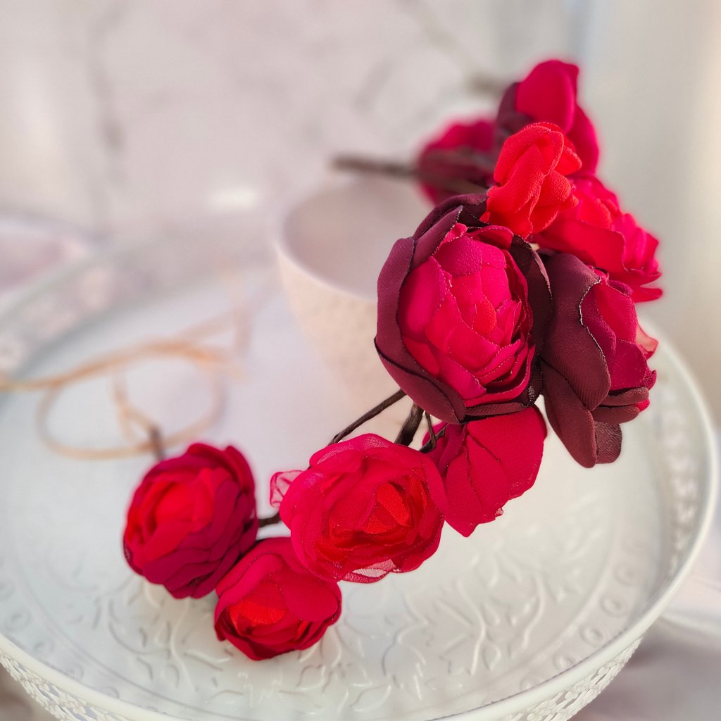 Ozdoby jsem pro vás připravila z kombinace ručně ušitých květů a skleněných korálků. Základem může být čelenka, sponka, gumička, hřebínek či vlásenka. Fantazii se meze nekladou.